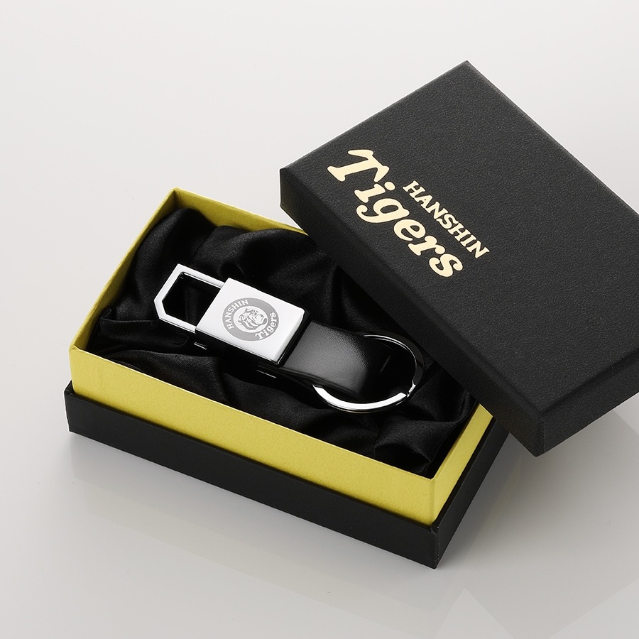 上質な黒の牛革と重厚感のあるメタルが織りなす、まさに“大人のための阪神キーホルダー”。熟練の職人が選び抜いた素材に、阪神タイガースのロゴを一つひとつ丁寧に刻印した、ライセンスグッズです。